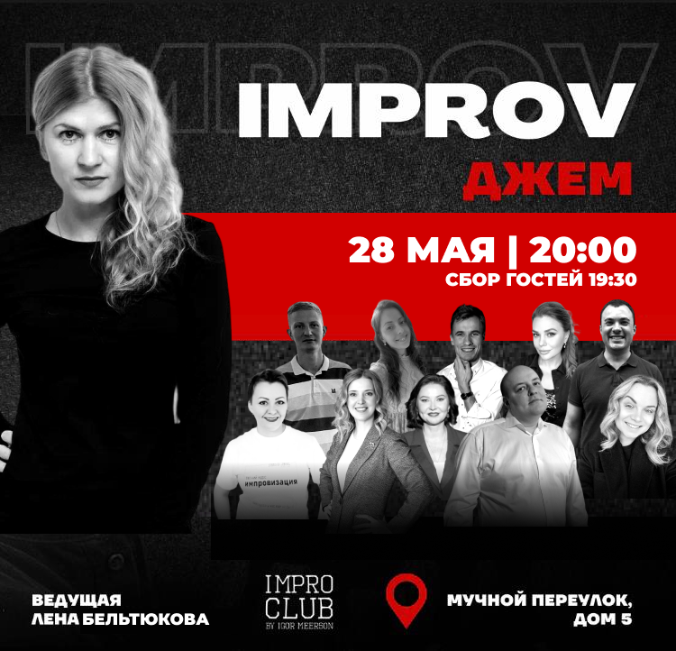 Члены Импро Клуба собираются на одной сцене, чтобы порадовать вас и самих себя комедийным шоу в формате чистой Импровизации. Ни сценария, ни режиссёра, только ведущая Лена Бельтюкова и вы, ваши задания, ваши эмоции, ваш смех!